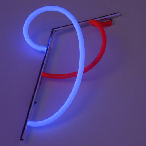 Created in 1986 for the exhibition Neon II: The Saga Continues, this piece from the series entitled Natural Sines features a Sterling silver brooch with reactive plastic that emits an eerie glow when in the presence of ultraviolet light.