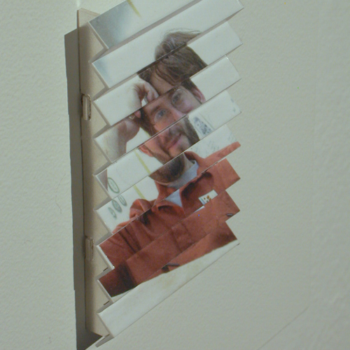 First exhibited in 2003, this artwork, entitled Jewellery, a mother's, 99, uses the format of a Tabula Scalata to give two versions of the content. Worn as a brooch and from eye levelthe artist in his studio. Viewed from the height of a four year olda mother with child (the artist at four). A span of timethen and nowheld within the same object.