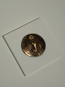 Images from recent Small-Scale Bronze Casting workshops:at the Sculpture Studio, The Banff Centre, March 2003 (#1)at the Red Deer Culture Services Centre, May 2004 (#2)SERIES at Red Deer College, July 2004 (#3#4)SERIES at Grande Prairie Regional College, August 2005 (#5#11)"Assimilation of ourselves to external object of interest, 156," medallic artwork (obverse):cast and patinated bronze. Paul W. Leathers, © 2003. O.D. 5.7 cm (#12)click to return to the previous page |