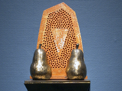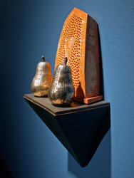 Pear Sconce: multi-fired ceramic with gold leaf. Trudy Golley, '07