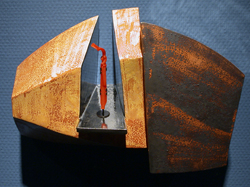(rusty) Reliquary: multi-fired ceramic with removable metal brooch. TEG/PWL, '98